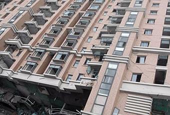 El edificio se derrumbó por la base durante la madrugada , hacia las 5:30 hora local (9:30 horas GMT del sábado), lo que provocó que la construcción cayera hacia un lado y, sin llegar a desmoronarse, quedara casi intacta, apoyada en una fachada como un árbol caído y mostrando los cimientos. Solo una persona murió. Esto sucedió en Shangai, China.