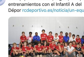 El Twitter oficial del Deportivo de la Coruña, se hace eco de la noticia de que un equipo de nuestra Escuela de Fútbol Base AFA Angola, comparte entrenamientos con el Infantil A del Deportivo.