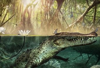Reconstrucción del aspecto en vida de Crocodylus checchiai. Obra de D. A. Iurino.