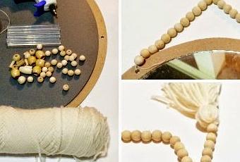 "RINCON ÚNICO" que al mismo tiempo será fiel reflejo de nosotros mismos...Hoy he seleccionado este "TUTORIAL"porque me ha parecido una bonita forma de personalizar un espejo y darle un toque bohemio muy interesante...Para realizarlo necesitaremos quitar el marco de un antiguo espejo redondo o cuadrado y quedarnos sólo con el cristal y la base trasera (que debe sobresalir por encima del cristal lo suficiente como para poder pegar sobre ella la totalidad de las cuentas deseadas)Necesitaremos tan sólo cuentas de madera, aguja, hilo de material plástico y un pegamento fuerte...En primer lugar realizaremos sobre la base las perforaciones que permitirán colgar nuestro espejo o realizar el adorno de la parte inferior...Realizaremos el motivo del colgador y el adorno de la parte inferior, optando como en la imagen por las borlas de lana de unas abrazaderas de cortina o colgadores de puerta...Finalmente pegaremos las cuentas de madera rodeando el espejo y optando por los colores y tamaños que más nos gusten...¿Realizarías este espejo tal y como está? ¿o le darías un toque personal con algunos cambios?, si es así ¿Qué cambiarías?¡FELIZ SEMANA!