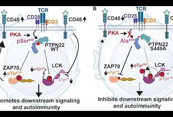 En el estudio preclínico publicado en la revista Science Advances , los investigadores analizaron cómo el gen PTPN22 afecta la activación de las células inmunitarias, o linfocitos T, en pacientes con lupus. Tanto en tejido humano como en un modelo murino de lupus, los investigadores observaron que un cambio químico llamado fosforilación actuaba como un interruptor de encendido, provocando una sobreexcitación de las células inmunitarias que causa enfermedades autoinmunitarias , como el lupus eritematoso sistémico (LES).