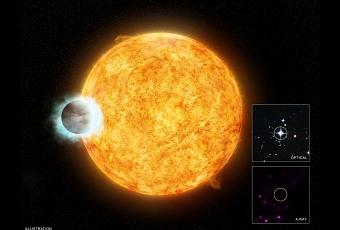 Imágenes óptica y de rayos X de la estrella WASP-18. Crédito: NASA/CXC/SAO/I.Pillitteri y colaboradores; DSS; NASA/CXC/M.Weiss.