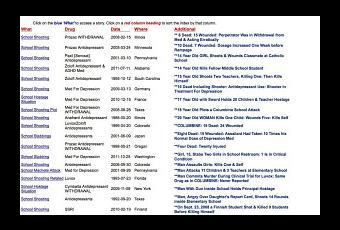 Al publicar sobre la semblanza psíquica del autor de la matanza escolar en Estados Unidos, ofrecí un enlace interesante sobre las conexiones entre medicamentos psiquiátricos y asesinatos en serie (podéis clicar sobre la foto para ampliarla).