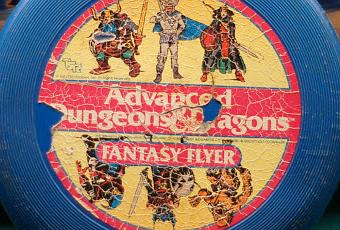 Las búsquedas de cosas para hacer entradas me suele llevar a a cosas curiosas que salen por casualidad.Tan curiosas que bien se merecen una entrada rápida.Esto esta sacado de un blog llamado Cyclopeatron,muy interesante y recomendable si os gustan los juegos de rol clásicos y los retroclones.Esto es un Frisbee o disco volador,algo muy muy ochentero,que salió como producto o merchandise de TSR para AD&D 1ª.En realidad es un modelo de plástico azul bastante generico que las empresas compraban a toneladas para sus promociones,fueran de lo que fueran.Yo tuve un par de esos cuando era pequeño y la única diferencia con el de la imagen era la pegatina de la parte superior.Hasta del mismo color.Apenas si había diferencias entre modelos mas allá de algún adorno grabado.