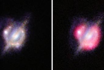 Pero este oscurecimiento no es un problema para ALMA y JVLA, puesto que estas dos instalaciones observan el cielo en longitudes de onda más largas, que no se ven afectadas por el polvo. Combinando los datos, el equipo descubrió que el sistema de fondo era en realidad una colisión que está teniendo lugar entre dos galaxias. Desde ese momento, ALMA y JVLA empezaron a jugar un papel clave en la caracterización de este objeto.