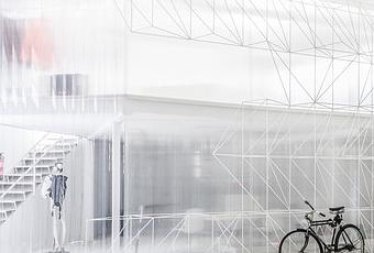 Una gran estructura de acero une los dos niveles, absorbiendo las cargas de la ventana que separa el espacio público del privado. Además sirve de apoyo para la colección del usuario de objetos pop y kitch. El edificio original era un garaje de taxis, esto aporta un espíritu industrial creando un espacio con mucha fuerza. El resultado de este maravilloso proyecto es un espacio ambivalente, moderno y atemporal que juega con un espacio blanco con toques de negro y amarillo.