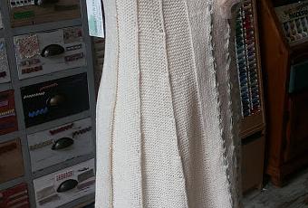 Este año, haciendo limpieza de primavera de mi stash, re-descubrí este patrón, aún en su bolsa y con su correspondiente lana, y junto a él unos 12 ovillos de lino de Drops que compré en otro momento. Y se me encendió la bombilla. Tuve que adaptar un patrón que se teje con agujas de 3mm a una lana que se teje con agujas de 6mm, pero valió la pena el esfuerzo. El diseño cuesta un poco de asimilar de entrada, pero una vez pasas las primeras vueltas es de lo más intuitivo. Más información aquí.