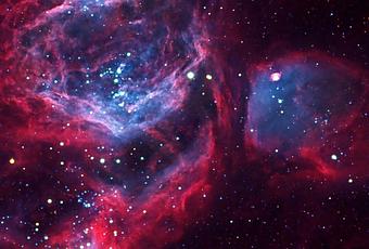 La Gran Nube de Magallanes es una galaxia satélite de la Vía Láctea, en donde abundan las regiones de formación estelar, algunas de éstas regiones se pueden ver incluso a simple vista, por ejemplo la famosa Nebulosa de la Tarántula. Sin embargo en esa galaxia existen más regiones en que las estrellas nacen, no menos intrigantes que la mencionada Tarántula. Es el caso de N51D, que podemos ver en ésta impresionante vista, tomada por Josep Drudis y procesada con la ayuda de su hijo Pau. Contiene dos objetos llamados nebulosa NGC 1968 y el cúmulo estelar NGC 1955. Se trata de una nebulosa de emisión y reflexión, NGC 1955 contiene jóvenes estrellas muy calientes que despiden radiación y fuertes vientos estelares a altas temperaturas, que ionizan el gas circundante haciendo que éste gas brille. Junto a éstas estrellas jóvenes hay muchas protoestrellas, que son futuras estrellas en sus etapas iniciales.