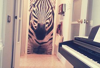 O muestro la perspectiva desde el piano para que veáis la armonía, en este caso de colores, con la lámina de cebra de la puerta. La podéis encontrar en muchas tiendas de decoración.