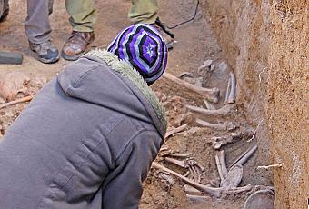 Tras él, el equipo continuaba sus trabajos con normalidad y se veían los restos de 14 de ellas ya localizados y que están siendo organizados para trasladarlos al laboratorio en el que se realizarán las pruebas de ADN antes de devolvérselos a sus familiares. Faltan tres de ellas por localizar aún y se desconoce si están debajo de los restos de las demás o más allá, bajo la hilera de los nichos adyacentes.
