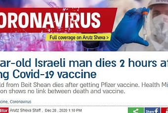 Israel, 28/12/2020 Un hombre de 75 años de Beit Shean murió el lunes por la mañana de un paro cardíaco, aproximadamente 2 horas después de recibir la vacuna Pfizer Covid-19. Esta persona recibió la vacuna a las 8:30 de la mañana y esperó el horario habitual en la clínica de salud, antes de ser dado de alta a su casa sintiéndose bien.