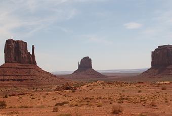 Pero subamos al coche y metámonos en el recorrido lleno de montículos rojizos y colosales mesas. Como siempre he defendido, esto no es una guía de viajes, no me parare en cada una de las montañas para darles nombres y sensaciones. Simplemente escribiré que, como aficionado al western, no podía estar más impresionado por aquel paraje natural de importancia capital para la historia del cine. Esas arcillosas formaciones rocosas que había visto en cientos de películas estaban justo frente a mí y no inmortalizare la frase de “eso me hizo sentirme muy pequeño” porque es estúpida (el que no sepa a estas alturas que todos y cada uno de nosotros somos insignificantes motas de polvo es que está muy perdido en la vida) pero sí, utilizando una frase hecha, plasmare que me sentía como un niño en una tienda de caramelos (asco de frases hechas). Si les hablare del calor. En el valle hacía mucho calor. No más que en el Valle de la Muerte, pero la ausencia de la más leve brisilla hacia que la sensación térmica creciera exponencialmente. El sol picaba, lo notaba en las orejas y es algo que me molesta más que cuando el calzoncillo decide, por su cuenta y riesgo, meterse en el jater. Dejando a un lado la rojez de mis orejas volvamos al camino de cabras que los Navajo controlan para que nosotros, los estúpidos hombres blancos (o de cualquier otro color) transitemos por sus tierras. Estoy convencido de que no se gastan un dólar en arreglar el caminito para que al final todos y cada uno de los turistas claudiquen y decidan hacer la excursión en los desvencijados cacharros utilizados por la tribu para llevar pasajeros y ahorrarse raspar el suelo del coche (como nos pasó a nosotros), un pinchazo o un cristal roto de un chinazo. Oigan, que a la vuelta había una pendiente por la que nuestro coche no subía y casi encalla (momento del tripazo contra el suelo) por los boquetes y bultos que se extendían por aquella cuesta.