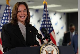 Kamala Harris, antes de su primer discurso de campaña como candidata. Erin Schaff / Pool / AFP