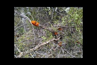 Deambulando por este lugar, nos tropezamos con una visión desconocida y sorprendente: enebros y sabinas estaban plagadaos de adornos anaranjados, impropios de la especie (por color, forma y textura). Se trata de un hongo, el Gymnosporangium clavariaeforme, que infecta a enebros y sabinas. Se les conoce también como cuernecillos del enebro.