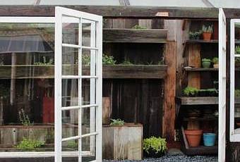 Este invernadero está construido con materiales recuperados, tanto su estructura como las macetas que contiene.