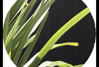 Contraste de color entre las plantas y el pavimento de madera tecnológica