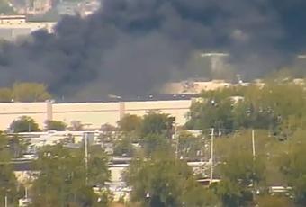 Se puede ver una espesa nube de humo desde el sitio del accidente.