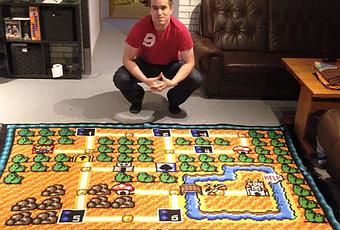 Es la primera alfombra con el mapa del juego de Super Mario.No creo que esta sea una buena idea para imitar si buscabas un pasatiempo pero verla terminada ¡es genial!.