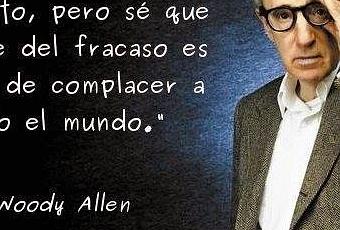 Nunca se me ha ocurrido buscar el éxito, me parecería un exceso de confianza innecesario, sin embargo, cuando me encuentro con Woody afirmando esto me viene a la cabeza mi madre diciendo aquello de: "No te preocupes, no se puede agradar a todos" . Esa era su manera decirme que no hiciera ni caso a la gente porque es imposible del todo que todos tengan el mismo gusto.