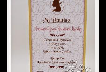 Como pueden observar los tonos escogidos han sido monocromáticos donde el protagonista del diseño es la confección per se, los detalles en el borde la invitación y el papel decorado muy sutil.
