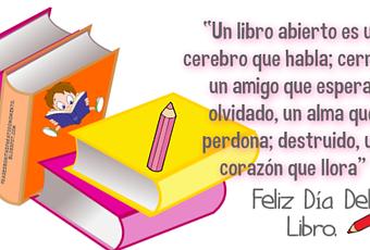 “Un libro abierto 📖 es un cerebro que habla; cerrado 📕 un amigo que espera; olvidado, un alma que perdona; destruido, un corazón que llora 💔”. Feliz Día Del Libro. 📔