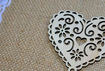 Todo el libro de firmas esta hecho con tela de saco que le da ese toque rústico, una puntilla en un lateral que le da ese toque vintage y un corazón de madera que le da el toque romántico.