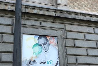 Cartel de la exposición en la fachada de la Biblioteca Nacional, Madrid