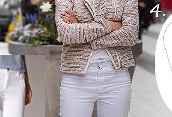 ¿Pensabais que esta semana nos olvidaríamos de nuestro consigue el look? Esta vez os traemos una propuesta de transición, con una chaqueta de tweed que para las mañanas frías nos vendrá muy bien y unos salones azul klein que le aportan un punto divertido y diferente. El resto básicos; pantalón blanco -imprescindible- y camiseta blanca. Una nueva dosis de moda real y cómoda para el día a día pero siempre a la última, ¿Os habéis fijado en como la chica de la foto le ha metido la tijera a los bajos del pantalón? Si tenéis algún pantalón desactualizado sólo con ese gesto conseguiréis ponerlos de nuevo.