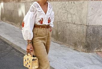 Un look que me encanta la camisa de manga bordada el pantalón con ese toque diferente, incluido el cesto.