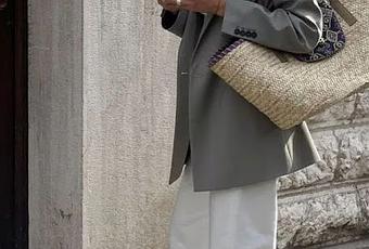 Uno de mis favoritos porque es muy yo, en blanco y con gorra y blazer.