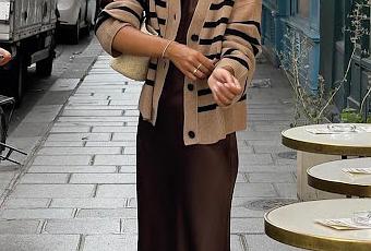 Blazer, falda de saten y camiseta basica, siempre combinación ganadora.