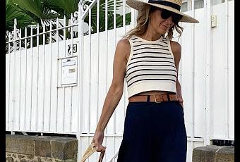 Uno de mis preferidos, el combo blanco y negro, las rayas, y el sombrero, ideal.