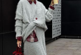 Un conjunto de punto y combinado así, me encanta!! una de mis mezclas favoritas, rojo y gris.
