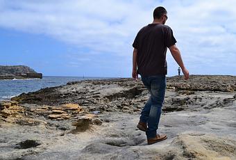 Ahí va mi hermana no sin cierta dificultad por las rocas, y es que, la erosión que ha hecho el mar en esta zona, hace qué el camino sea tortuoso!