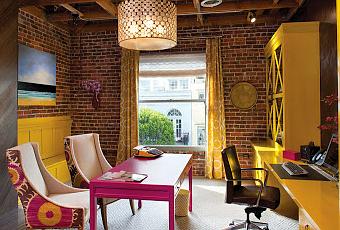 Este estudio de arquitectura ADL, en San Francisco, es uno de esos lugares donde me encantaría trabajar [que no significa que no me guste donde me encuentro, pero...uf]. No sé qué os parecerá a vosotr@s, pero lo tiene todo; colores fuertes, papeles pintados, paredes de ladrillo, espejos, lamparas...cada espacio definido pero al mismo tiempo complementario. Me imagino en este despacho diseñando, con los clientes presentando el proyecto, eligiendo los acabados...es el sueño de cualquier interiorista. Ya iremos descubriendo los proyectos realizados por este estudio, que tienen una filosofía de trabajo muy interesante. fuente: ADL