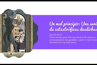 ¡Saludos! En esta nueva entrada les comparto mi opinión del libro titulado “Un mal principio” del autor Lemony Snicket. Dicho libro forma parte de la saga Una serie de catastróficas desdichas conformada por trece libros, donde junto a los hermanos Baudelaire nos aventuramos a conocer a sus parientes más lejanos que tienen una relación con el catalejo que Klaus encontró el día que su casa se incendió.