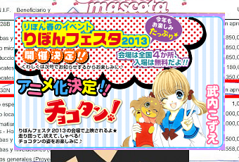 Chocotan! de Kozue Takeuchi estrenará un anime a lo largo de 2013 aunque de momento, y hasta que no salga el próximo número de la revista Ribon, no hay datos precisos sabemos que se hará una emisión especial durante el Ribon Festival (que suele celebrarse entre primavera y verano dependiendo del año).