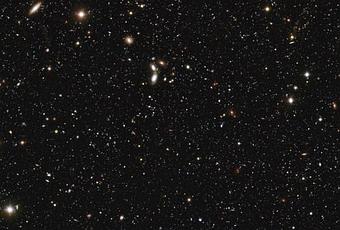 Las galaxias detectadas son miles de millones de veces menos perceptibles que las que pueden observarse a simple vista y de un rango de colores no directamente observables. Esta imagen profunda ha sido esencial para el descubrimiento de una gran cantidad de galaxias que están tan lejos que se ven tal como eran cuando el Universo tenía sólo 2 mil millones de años de edad. En este mar de galaxias, o universos islas como son a veces denominadas, sólo son visibles unas pocas estrellas pertenecientes a la Vía Láctea. Una de ellas está tan cerca que se mueve muy rápido en el cielo. Esta “estrella de alto movimiento real“ es visible a la izquierda de la segunda estrella más brillante en la imagen. Aparece como un divertido y alargado arcoiris debido a que la estrella se movió mientras la información era obtenida en los diferentes filtros durante varios años.