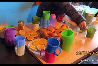 Un grupo de padres se pusieron al hombro el compromiso de trabajar en un merendero, que en su primer día les arranco sonrisas, en un encuentros de "vecinitos". Piedra del Aguila: Tortas fritas, pan casero con mantequilla y mermelada, chocolate, té y mate cosido. Más de una veintena de degustantes entre niños y niñas, que se acercaron sin ninguna timidez, es que al ver las exquisiteces que las madres habían preparado, más ganas de merendar tenían. Algunos mayores también se tentaron a compartir en comunidad, como lo expresaba la gacetilla de invitación que fue viral en las redes sociales.