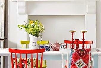 Váis a ver que bien quedan mezcladas con sillas de plástico, diseños más actuales o bien pintadas de colores, esta opción tengo que decir que me encanta. Fijaros en como acompañarlas con algún detallito decorativo del mismo color para unificar el ambiente. También las podemos unir cuando son de diferentes estilos pero con la misma gama cromática.