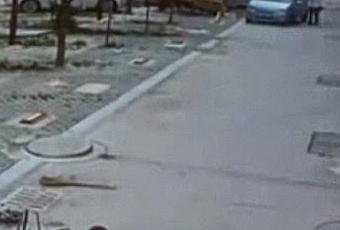 La grabación de una cámara de seguridad al noreste de China muestra a un niño en cuclillas en medio de la calle jugando (o trabajando) con un martillo y unos trozos de madera. A continuación, un vehículo todocamino rojo conduce lentamente hacia él sin percatanse de su presencia, pasando por encima del niño.