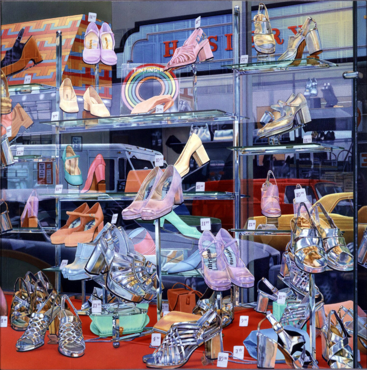 "Zapatos plateados", 1974, bodegón del pintor fotorrealista estadounidense Don Eddy (1944)