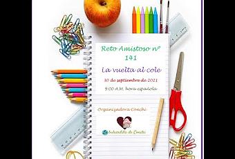 Hoy se celebra el reto amistoso nº141 y la anfitriona para éste mes de Septiembre ha sido nuestra querida Conchi que nos propuso el tema "la vuelta al cole"