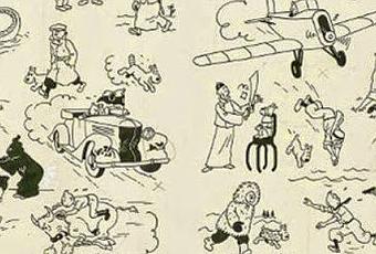 Este lote número 1, valorado inicialmente entre 700.000 y 900.000 euros, es una doble página realizada con tinta china y destinada a las guardas, es decir, a las hojas de papel ubicadas al principio y al final de los álbumes de Tintín publicados entre 1937 y 1958.