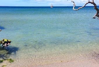 Estoy cerca del puerto de El Guamache, con el cerro de Macanao muy al fondo, ante una playa cristalina, sin olas, con manglares, poco profunda y solitaria. No son ni siquiera las nueve de la mañana y José, el encargado del restaurante, me ofrece una cerveza fría que le cambio por agua, y me recita el menú de ese día: sopa de cangrejo con coro coro (un pescado), con tostones fritos. Me da la llave de la puerta del baño, por si quiero ir; me ofrece un toldo y me deja claro que estará adentro por si quiero algo más.