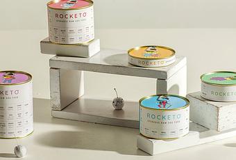 Los alimentos de Rocketo vienen en latas de diferentes tamaños y colores según los ingredientes y la composición de cada uno. Y, además de un diseño minimalista y simple con el logotipo y la información nutricional, cada tapa lleva ilustraciones creadas por Gedeminas Siaulys de perros personificados actuando como astronauta, explorador o de traje. De esta forma, ponen los ponen al mismo nivel que las personas en cuanto a la importancia de que lo que coman les aporten la energía necesaria para su día a día.