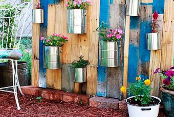 Se trata de unos pallets, colocados estilo patchwork con unos cuantos cubos vacíos, donde tus flores lucirán muchísimo y serás la envidia de todo el vecindario.