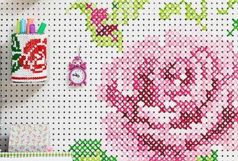 Hoy jueves vuelve a lucir el sol, algo que reconozco me carga de energía, así que he decidido hacer un post muy primaveral. Un tablero perforado pintado a modo de punto de cruz, si te animas te enseño a realizarlo.
