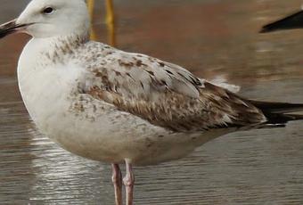 Una gaviota de esas de manual que todos esperamos encontrar, con prácticamente todos los rasgos útiles para identificarla: la cabeza blanca, ojo pequeño, pico bicolor, bufanda en el cuello, esas bonitas escapulares ya mudadas en tono grisáceo, las coberteras de un marrón difuminado...