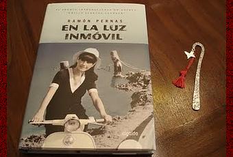 El viernes pasado el cartero me trajo hasta casa dos regalitos. Y me apetece compartirlos con vosotr@s. Son los que veis en la fotografía: el libro y el marcapáginas.El libro lo gané en un concurso de facebook organizado por Editorial Algaida (¡Muchas gracias!). Se titula, ya veis, "En la luz inmóvil" y viene, además, con dedicatoria del autor, Ramón Pernas, ganador con esta obra del Premio Internacional Emilio Alarcos de Novela. Este párrafo que os pongo a continuación es el que abre el libro; no me digáis que no promete... Espero que la novela continúe en la misma tónica.